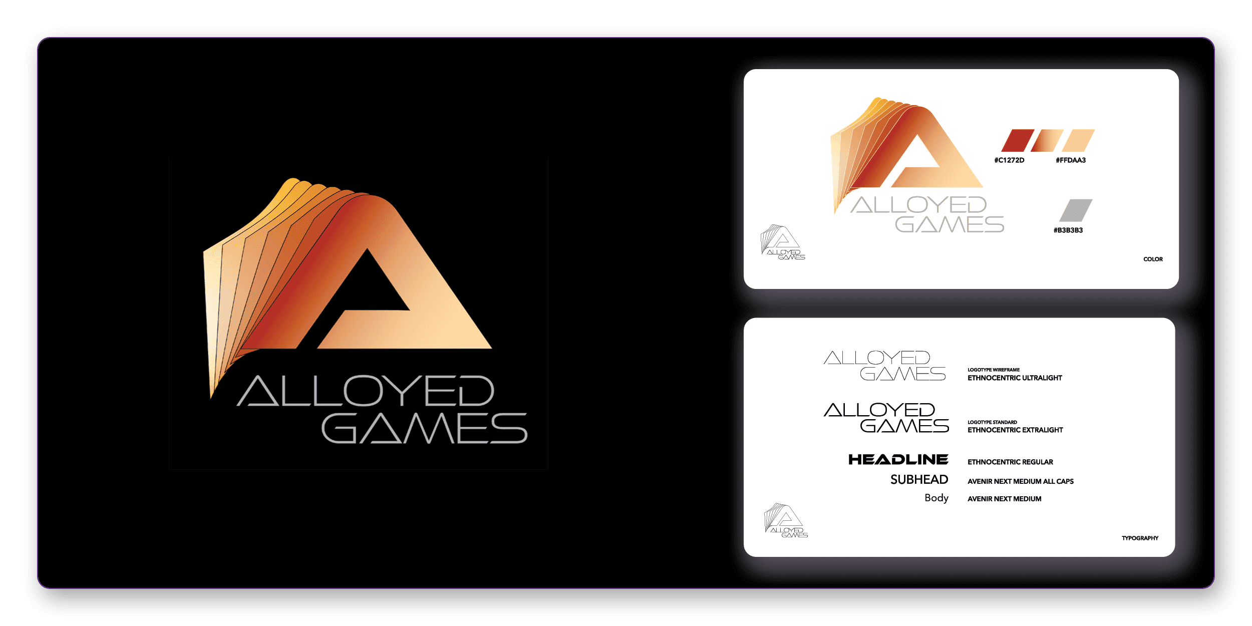 Alloyed Games is the first company from a young entrepreneur who is pursuing his dream of creating his own game based on the best elements from the best games he has played for years. For this identity package, it was important to the client to have a sense of motion and energetic tones.